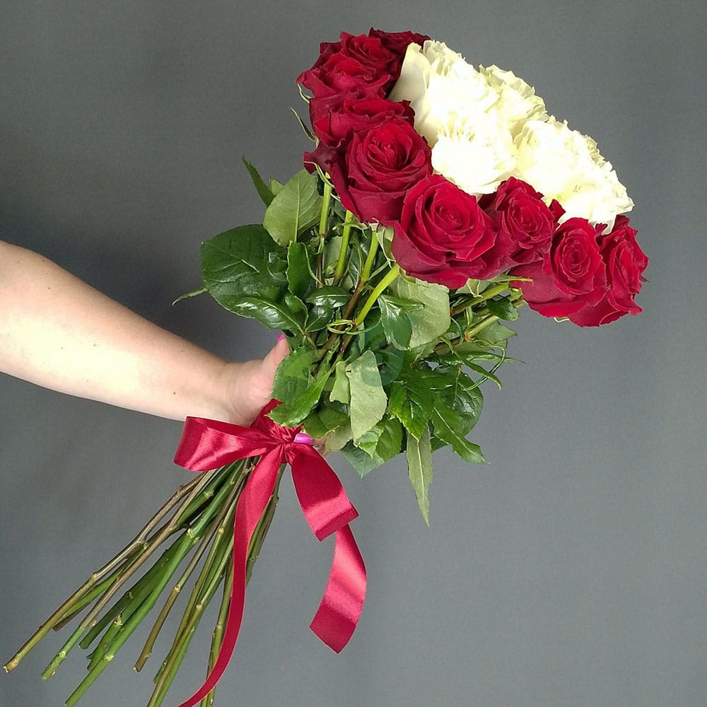 Всего пара кликов и букет из 25 белых и красных роз будет доставлен по нужному вам адресу.