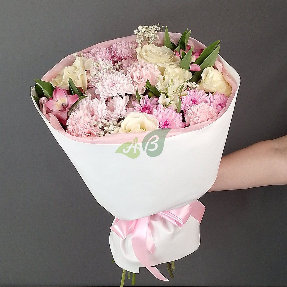 Этот букет из разных живых цветов можно дарить всем: и привередливой красавице, и строгой начальнице, и милой маме, и заботливой бабушке. Перед ним невозможно устоять. Но главное, что он не требует дополнений в виде подарка. Ведь этот букет и сам по себе шикарный подарок.